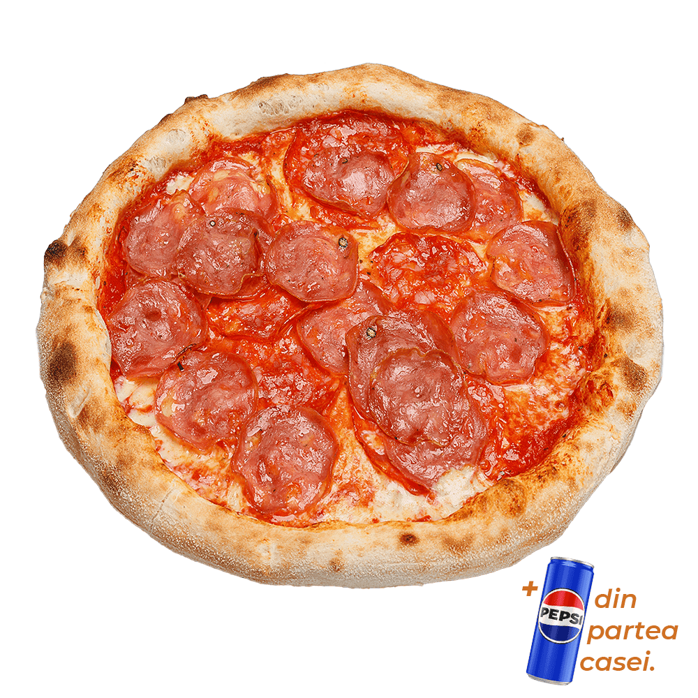Ingrediente: sos roșii, mozzarella bufala, salam napoli. Gramaj: 460gr