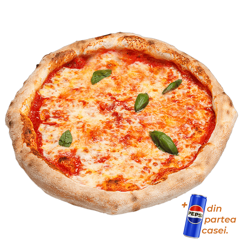 Ingrediente pizza: sos roșii, mozzarella fior di latte , prosciutto cotto. Gramaj: 445gr